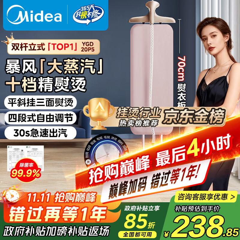 包邮 美的(Midea)【行业双杆热卖TOP1】挂烫机家用挂式熨烫机/便携增压蒸汽电熨斗/服装店平烫商用/政府补贴YGD20P5